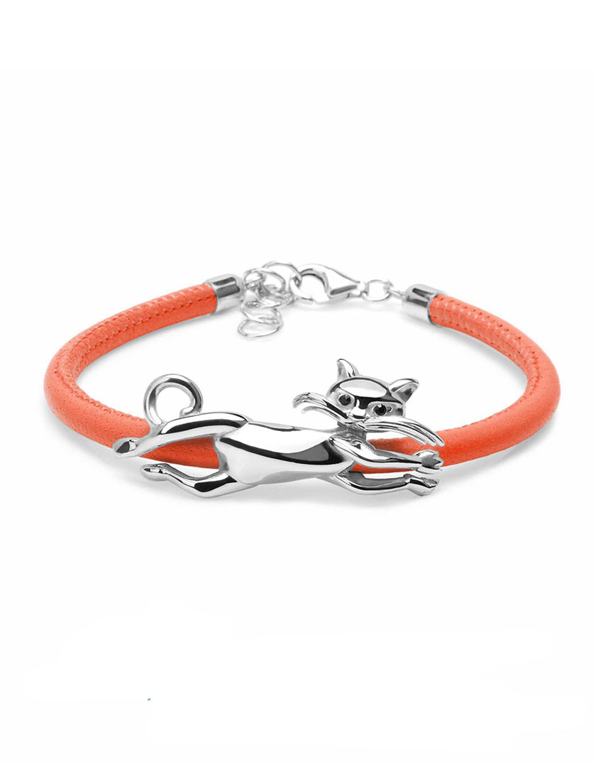 Bracciale Gatto - bracciale Argento rodiato / Ecopelle Arancio - La Gatta Gioelli